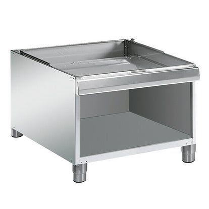 Fianchi, fondo e schienale in acciaio inox. Su 4 piedini regolabili n altezza.
