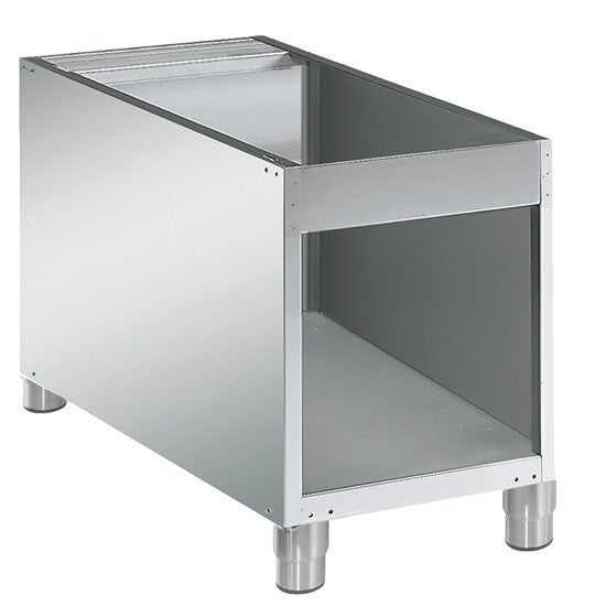 Fianchi, fondo e schienale in acciaio inox. Su 4 piedini regolabili n altezza.